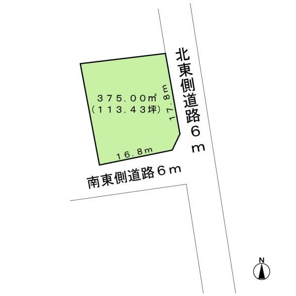 | 接道状況 | 北東6m 公道 接面17.8m 南東6m 公道 接面16.8m 二方道路(除角地) | ||