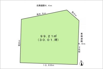 | 接道状況 | 北6.4m 公道 接面8.5m 東6m 公道 接面8m 角地 | ||