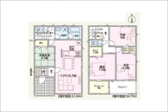 | 設備 | トイレ2ヶ所、浴室乾燥機、システムキッチン、カウンターキッチン、IHクッキングヒーター、浄水器、床下収納、複層ガラス、モニタ付インターホン、ルーフバルコニー、駐車場3台分、[火災警報器等設置済] | ||