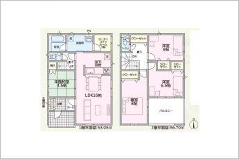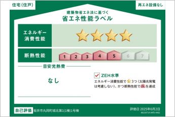 | 設備 | 温水洗浄便座、トイレ2ヶ所、浴室乾燥機、システムキッチン、カウンターキッチン、IHクッキングヒーター、浄水器、床下収納、複層ガラス、モニタ付インターホン、ディンプルキー、ルーフバルコニー、駐車場3台分、[火災警報器等設置済] | ||