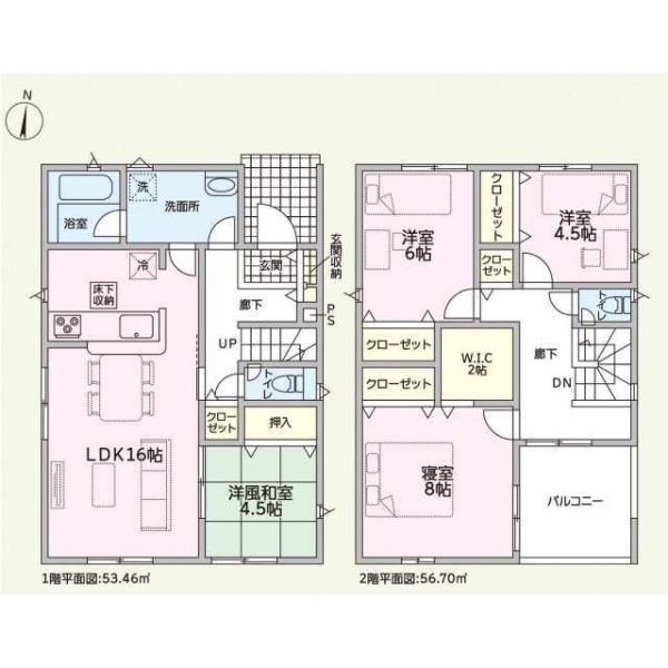 | 設備 | 温水洗浄便座、トイレ2ヶ所、浴室乾燥機、システムキッチン、カウンターキッチン、IHクッキングヒーター、浄水器、床下収納、複層ガラス、モニタ付インターホン、ディンプルキー、ルーフバルコニー、駐車場3台分、[火災警報器等設置済] | ||